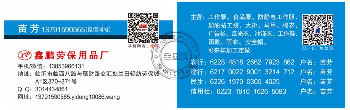 主营:工作服、大褂、雨鞋、雨衣、马夹 加油站工装、纱布口罩、棉服、手套